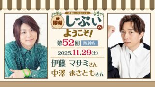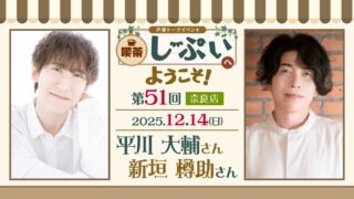 喫茶しーぷいへようこそ! 【奈良店】喫茶しーぷいへようこそ!平川大輔さん 新垣樽助さん ご来場のお客様へご協力のお願いと開催方針について ご来場いただくお客様におかれましては、【コロナ禍対応について】の事項を必ずご一読のうえ、 お申込みいただけますようお願い申し上げます。 QRチケット販売 ※相互申込はご遠慮ください。 抽選応... 2025.09.18 喫茶しーぷいへようこそ!